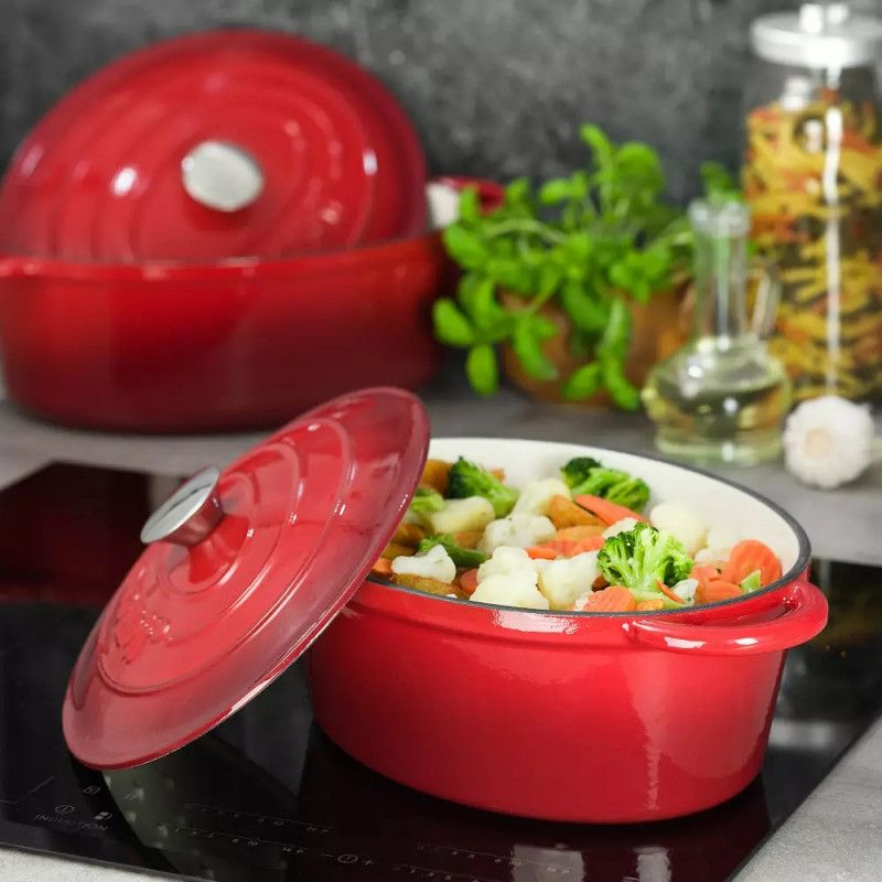 Чугунена тенджера Kinghoff KH 1612, 6.2 литра, 33 см, Овална форма, Емайлирана, Индукция, Червен