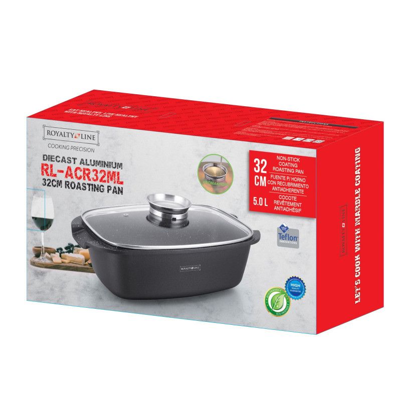 Съд за печене-ростер Royalty Line RL-ACR32M, 5.9L, Мраморно покритие Greblon, Индукция, Черен