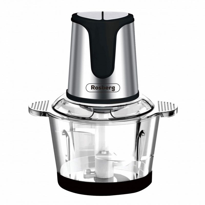 Чопър ROSBERG R51111D, 400W, 2 литра, Стъклена купа, 2 скорости, Инокс/черен