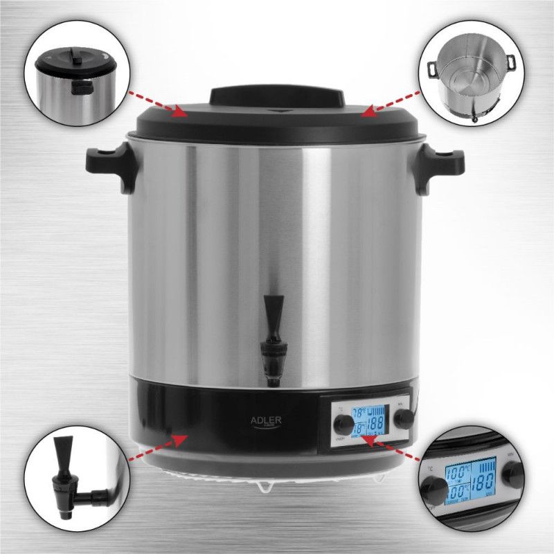 Уред за стерилизиране на консерви ADLER AD 4496, 2600W, 28 л, 30-100C, Дисплей с таймер, Инокс