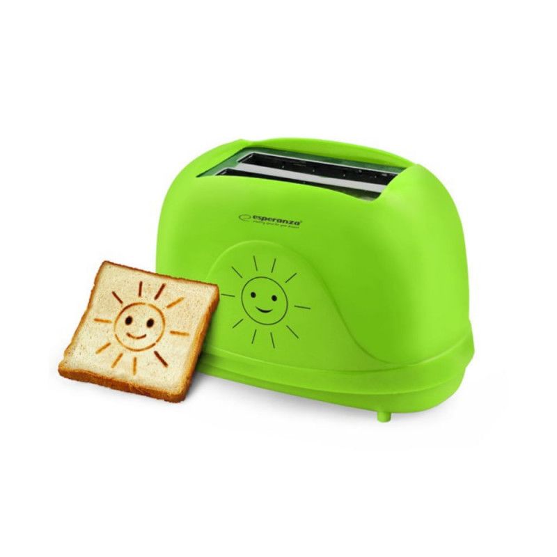 Тостер Esperanza EKT003 Smiley, 750W, 2 печата с усмивка, 7 степени, Зелен
