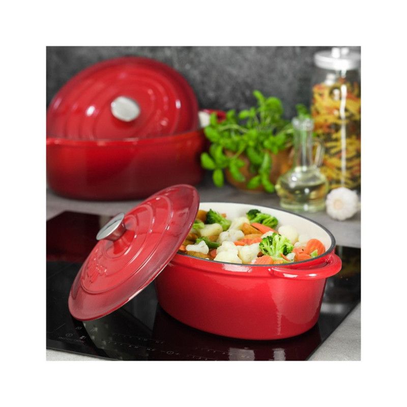 Чугунена тенджера Kinghoff KH 1530, 4.5 литра, 30 см, Овална форма, Емайлирана, Индукция, Червен