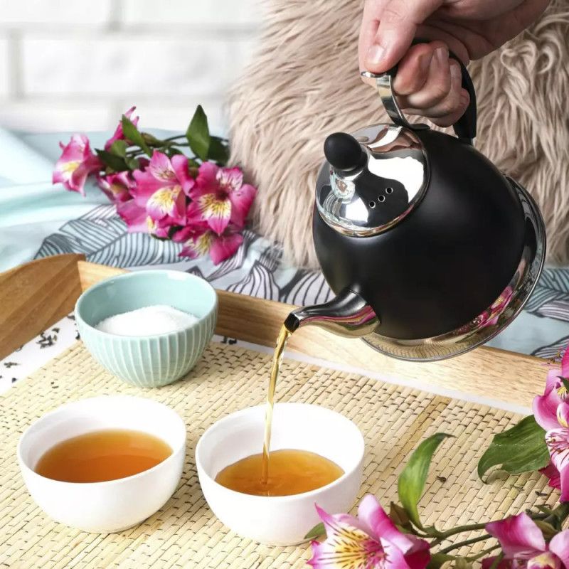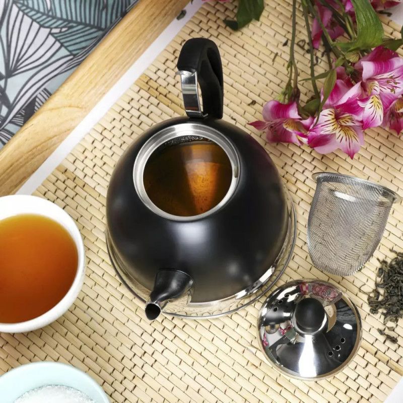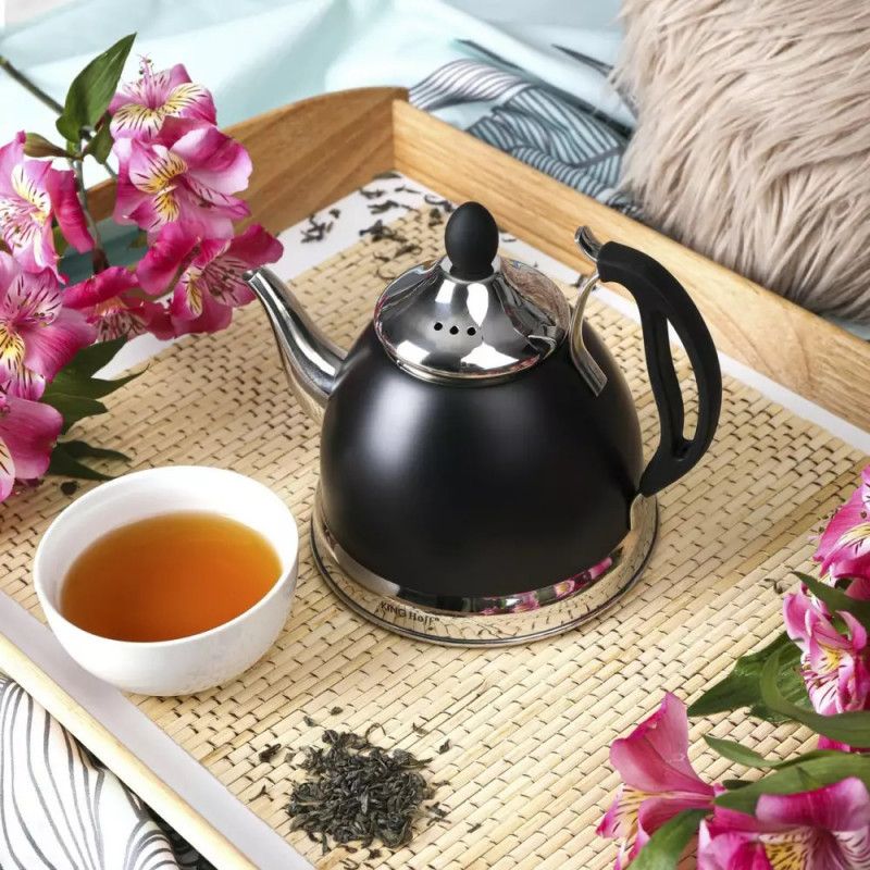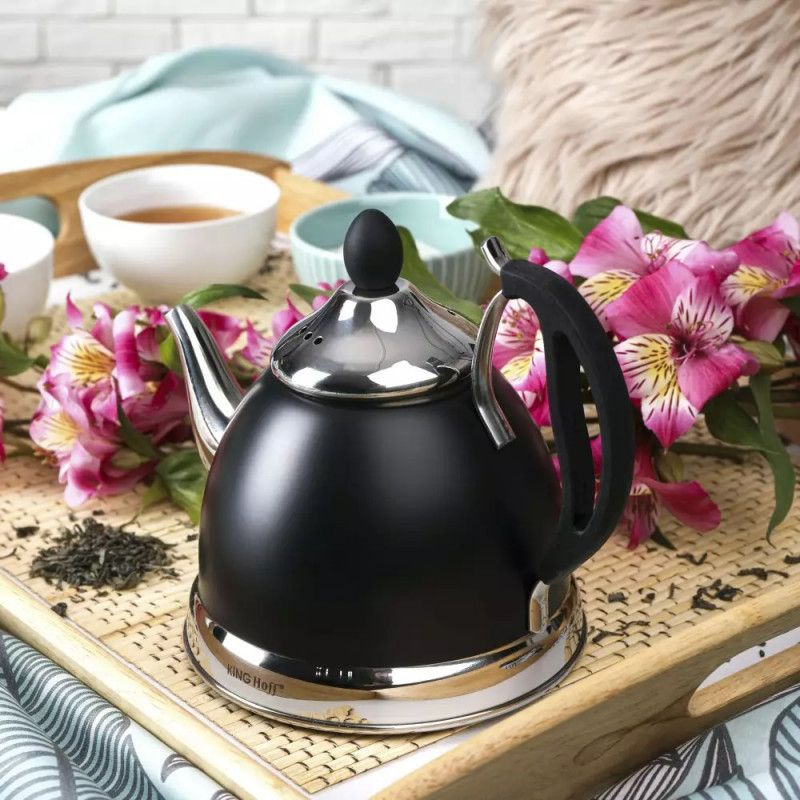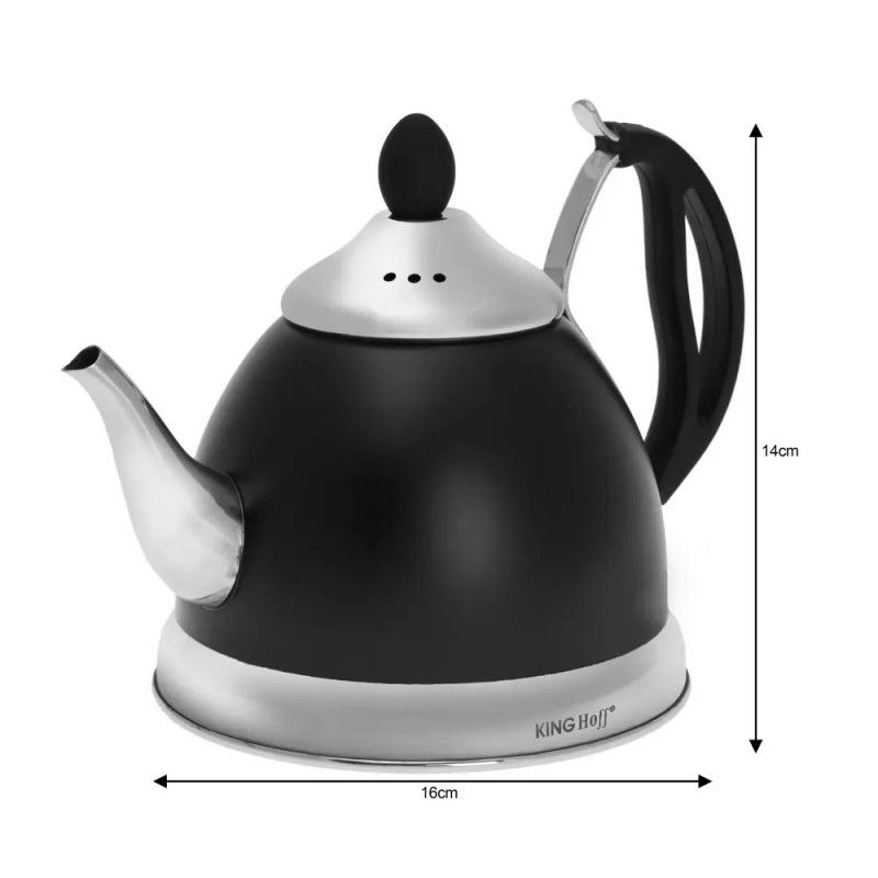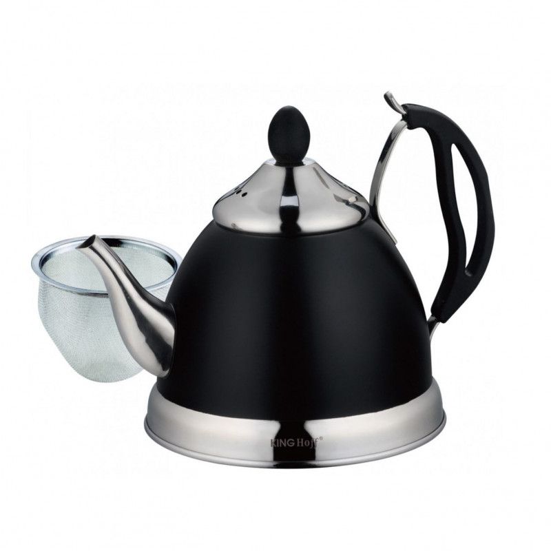 Чайник с цедка KINGHOFF KH 1538, 1 литър, Инокс, Черен/Сребрист
