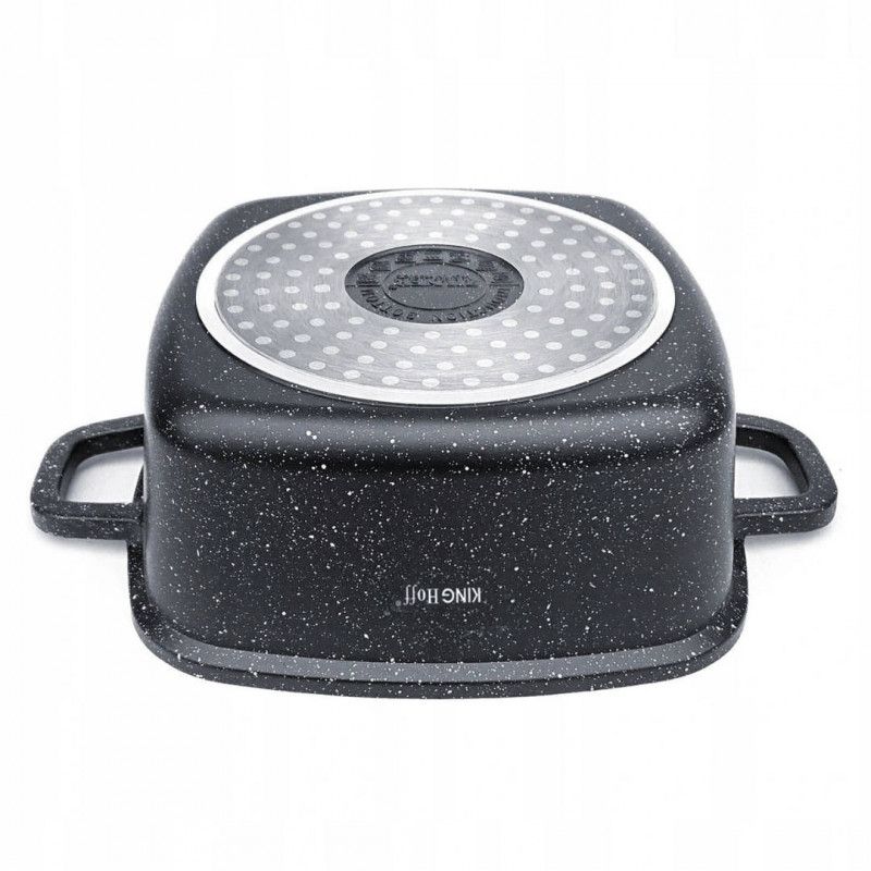 Тенджера за фурна и котлон KINGHOFF KH 1604, 26x26, 5.5l, Мраморно покритие, Индукция, Черен