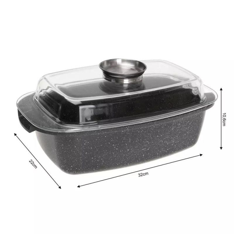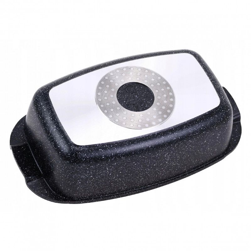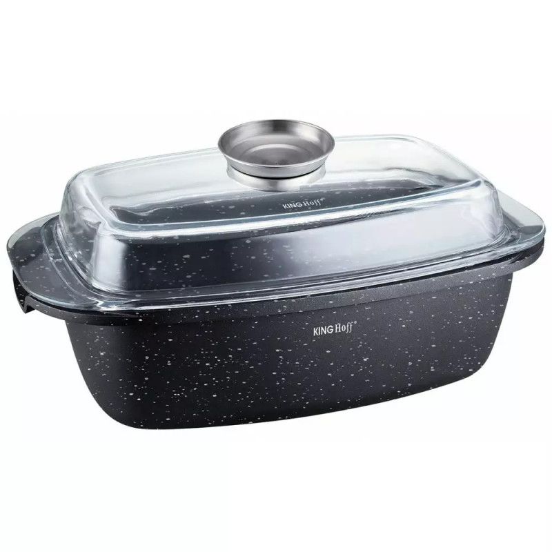 Ростер за фурна и котлон Kinghoff KH 1608, 5.5 литра, Капак с дозатор, Мраморно покритие, Индукция, Черен