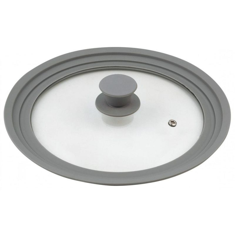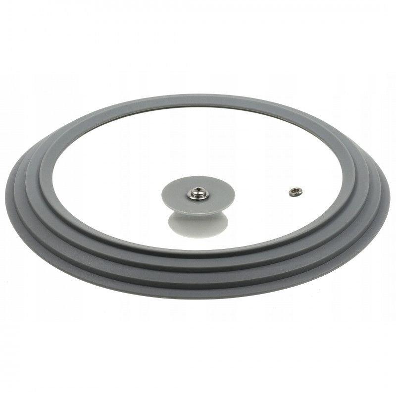 Капак KINGHOFF KH 1649, 24/26/28 cм, Стъклен, Силиконов ръб, Универсален, Сив