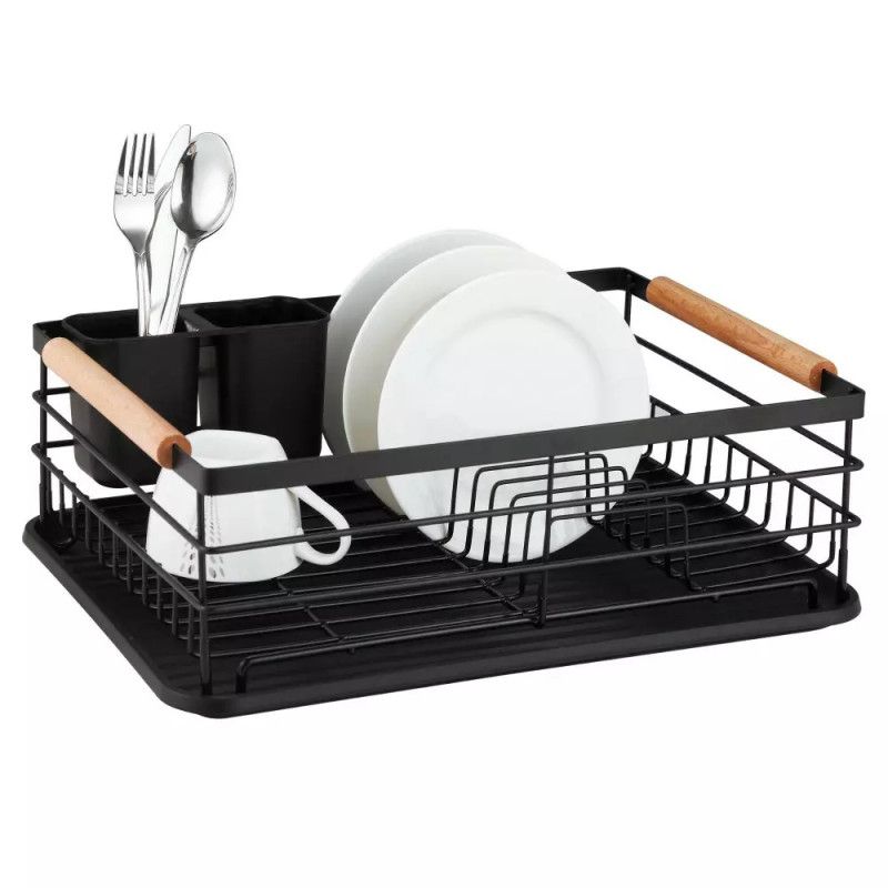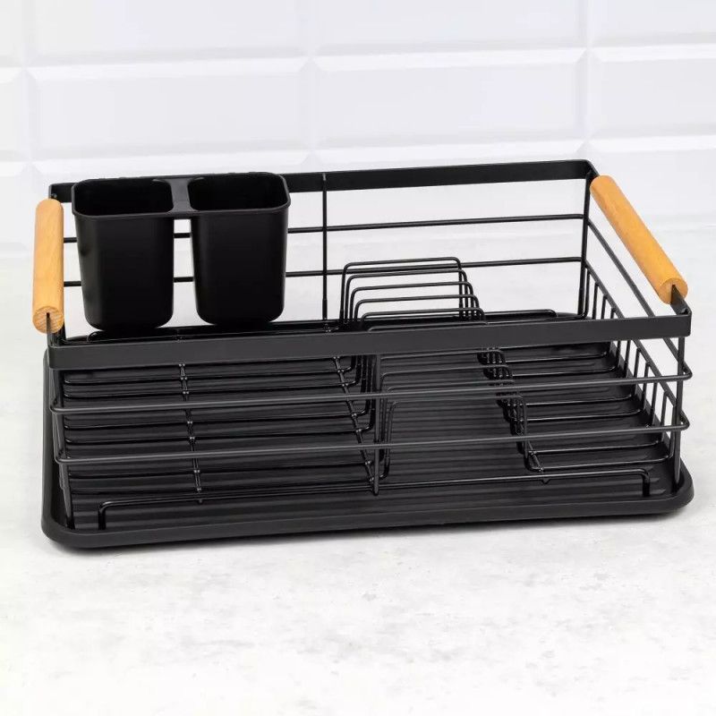 Сушилник за съдове KINGHOFF KH 1728, Поставки за прибори, Дървени дръжки, Черен