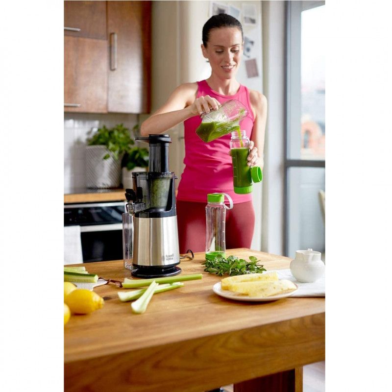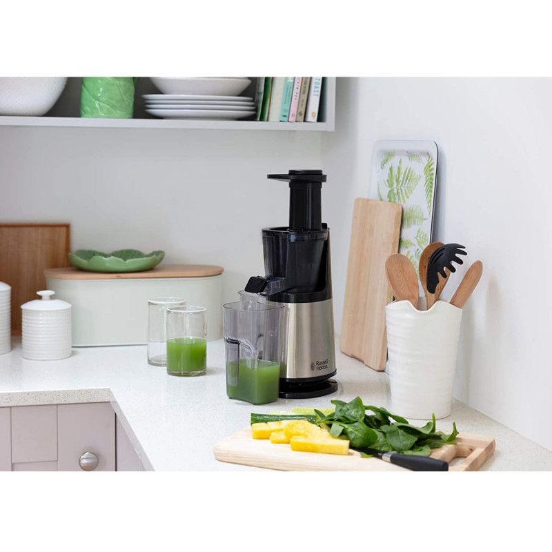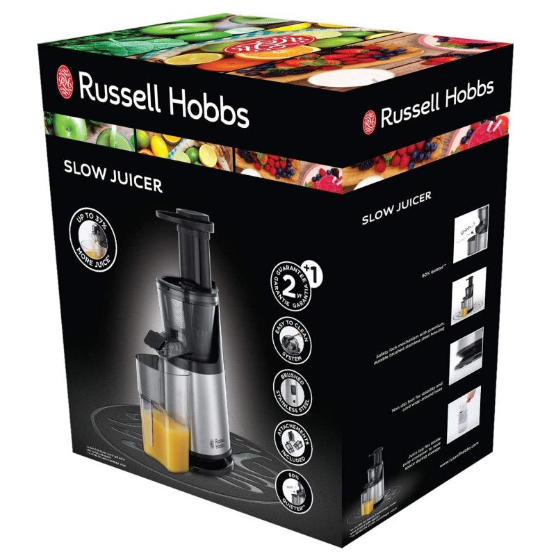 Сокоизстисквачка Slow juicer RUSSELL HOBBS 25170-56, 150 W, 3 сита, 0.7 l, Обратно движение, Студено пресоване, Инокс/черен