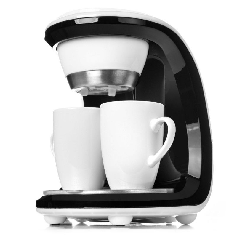 Кафемашината работи с мляно кафе, като подвижният филтър я прави лесна за почистване и поддръжка. Корпусът й е изработен от пластмаса в бял цвят.