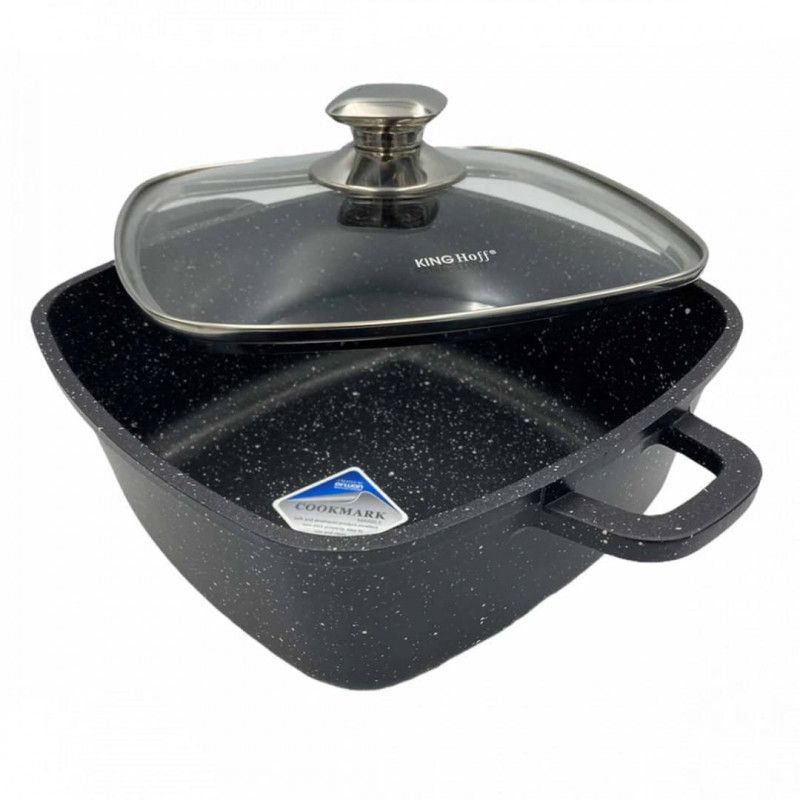 Тенджера за фурна и котлон KINGHOFF KH 1603, 24x24, 4.5l, Мраморно покритие, Индукция, Черен