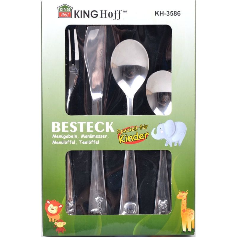 Комплект прибори за деца с животни KINGHOFF KH 3586, 4 части, Гланц, Неръждаема стомана