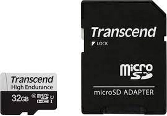 MicroSD памет 32GB TRANSCEND High Endurance USD350V, microSDHC UHS-I U1, up to 100MB/s + SD адаптер