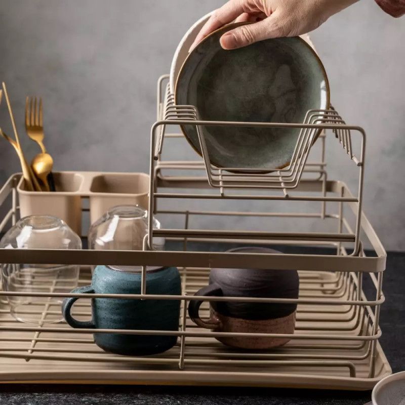 Сушилник за съдове на 2 нива KINGHOFF KH 1839, Поставка за прибори, Бежов