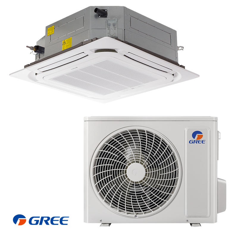 Касетъчен климатик GUD125T1 / GUD125W1/NhA-S на климатични системи Gree е 4-пътна касета с висок клас на енергийна ефективност, подходяща за монтиране в окачени тавани в търговски или офис помещения. Подобрената конструкция на тялото ви гарантира ниско ниво на шум и лесна поддръжка. (в комплекта е включено безжично IR дистанционно)