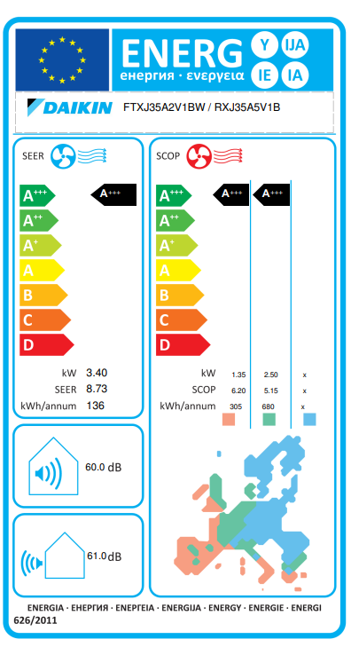 Инверторен климатик FTXJ35A / RXJ35A е част от най-новата дизайнерска серия климатици Emura 3 на Daikin. Уникалният дизайн, предлаган в 3 цвята - матово бял, сребърен и матово черен, и специално разработените технологии гарантират комфорт, ефективност (A+++ при охлаждане и отопление) и надеждност през цялата година.