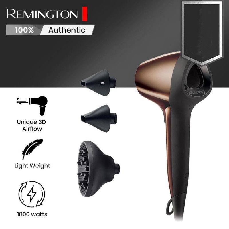 Сешоар REMINGTON AIR3D D7777, 1800W, Йонизация, DC мотор, 3D поток на въздуха, Кафяв