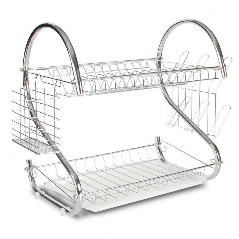 Сушилник за съдове ROSBERG R53000H, 2 нива, Поставки за прибори и чаши, Хром