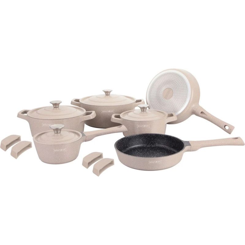 Комплект съдове Royalty Line Premium RL-OS1014, 14 ч, Отливка, Мраморно покритие, Индукция, Бежов