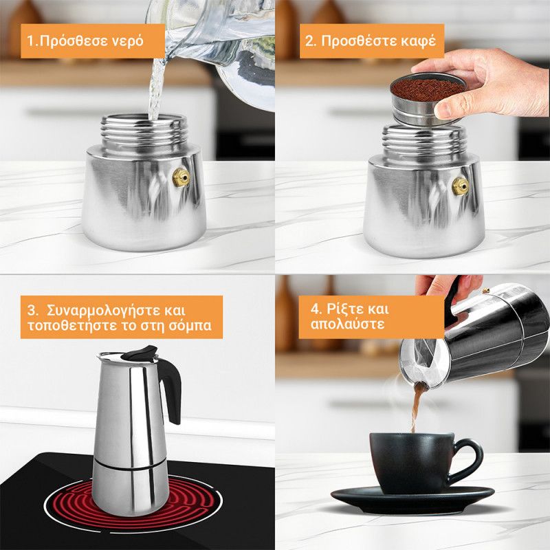 Кубинска кафеварка ROSBERG R51173F4, 4 чаши, Инокс