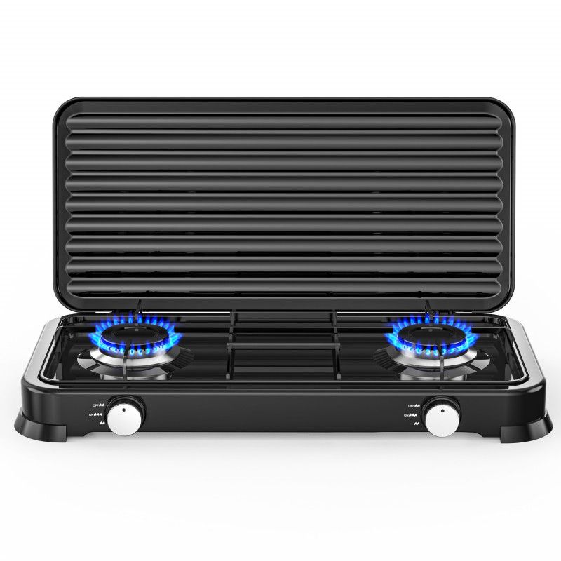 Двоен газов котлон с капак ROSBERG R51454D2 2х 2.2 kWh, 30 mbar, Въглеродна стомана, Черен