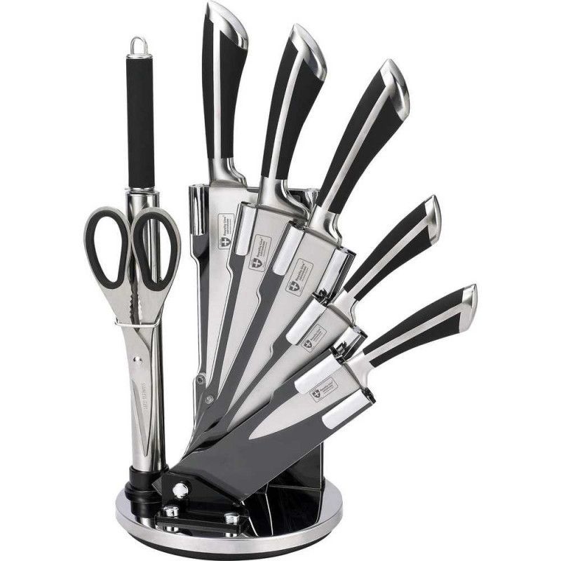 Комплект стоманени ножове с ножица и точило на въртяща се стойка Royalty Line