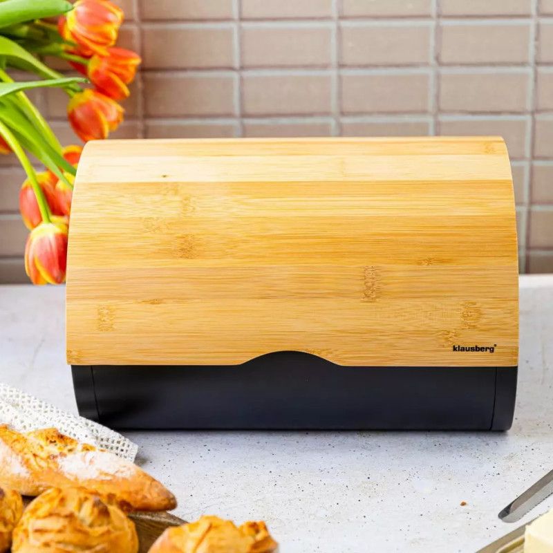 Кутия за хляб KLAUSBERG KB 7711, 32 см, Лека и здрава конструкция, Бамбук, Кафяв/черен