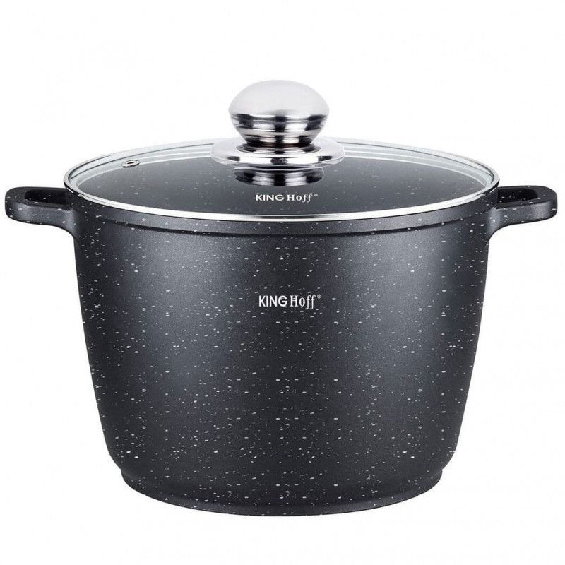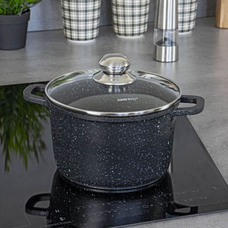 Тенджера дълбока KINGHOFF KH 1599, 28 см, 10 литра, Мраморно покритие, Индукция, Черен