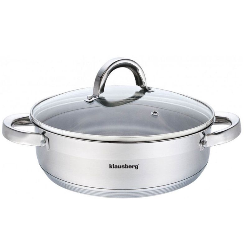 Тиган с дръжки и капак Klausberg KB 7173, 26 см, 4,6 литра, Дебело дъно, Инокс