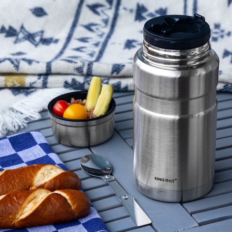 Термос за храна KINGHOFF KH 1458, 0.75 l, Двойни стени, Вакуум, Поддържане на температурата до 12 ч, Инокс