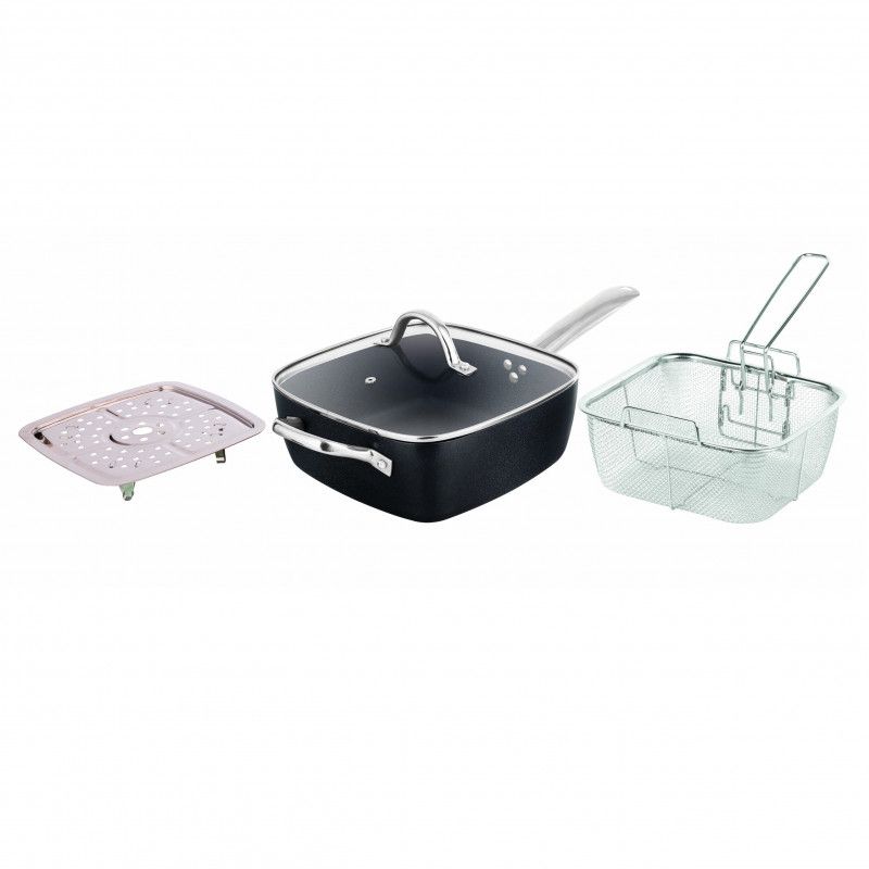 Тиган мултифункционален Oliver Voltz OV51319H4, 4.3L, За фурна и котлон, 24см, Кошница, Индукция, Черен