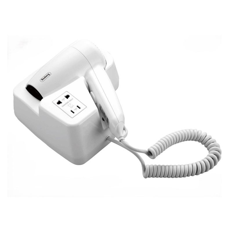 Сешоар за стена Rosberg R51100HT, За хотел и басейни, 1300W, 2 скорости, Изход за самобръсначки, Бял