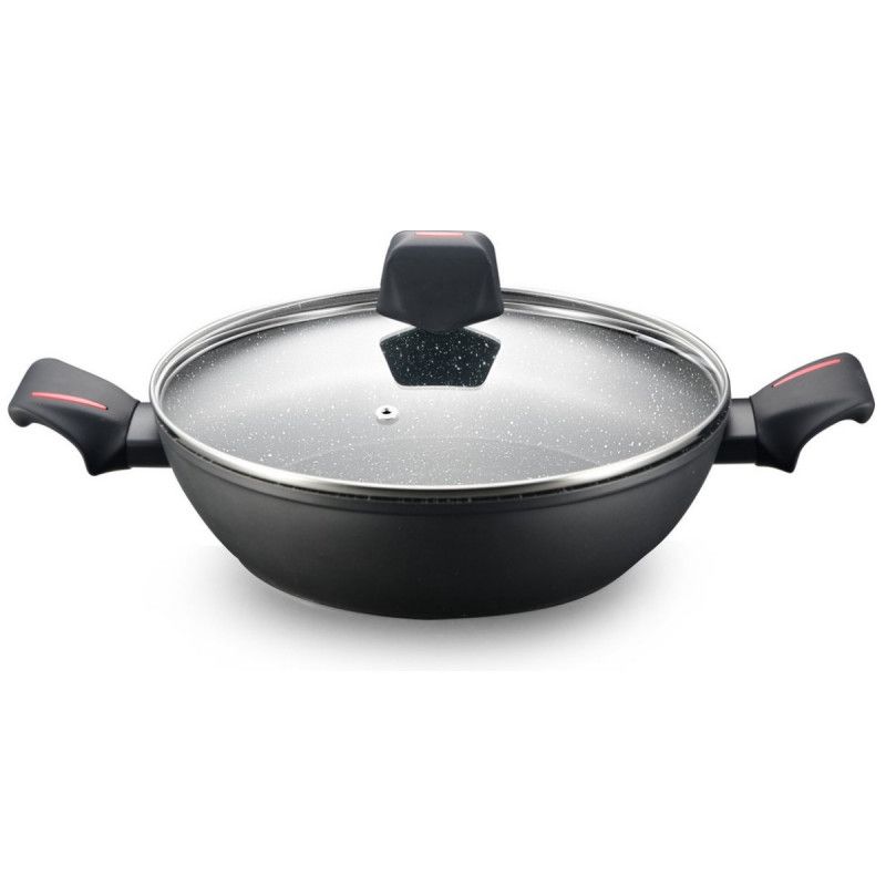 Дълбок тиган Royalty Line RL-FSC28, 28 см, 4.5 л, Стъклен капак, Мраморно покритие, Индукция, Черен