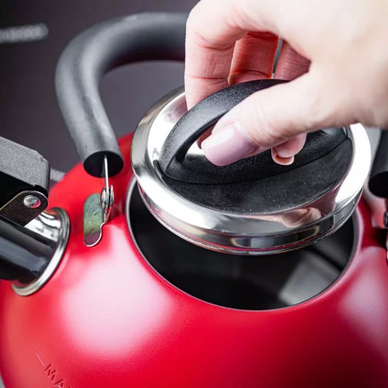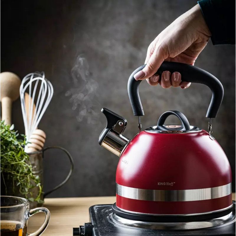 Свирещ чайник Kinghoff KH 1853, 1.8 л, Индукция, Топлоизолирана дръжка, Червен