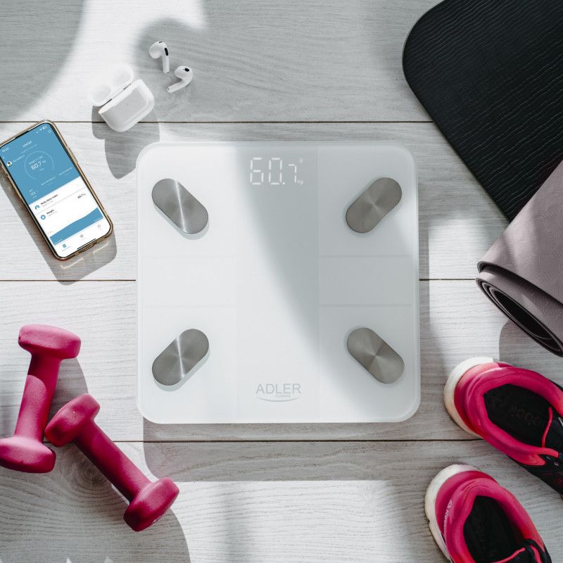 Кантар Adler AD 8186, SMART Tuya, До 180 кг, LED дисплей, 3 x ААА, Бял