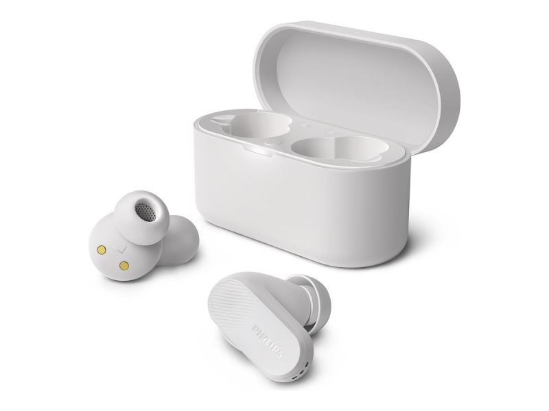 PHILIPS True Wireless Earbuds IPX4 Make calls using a single earbud Up to 24 hours play time white