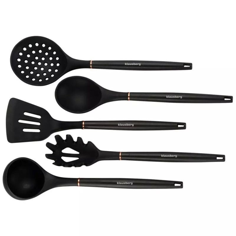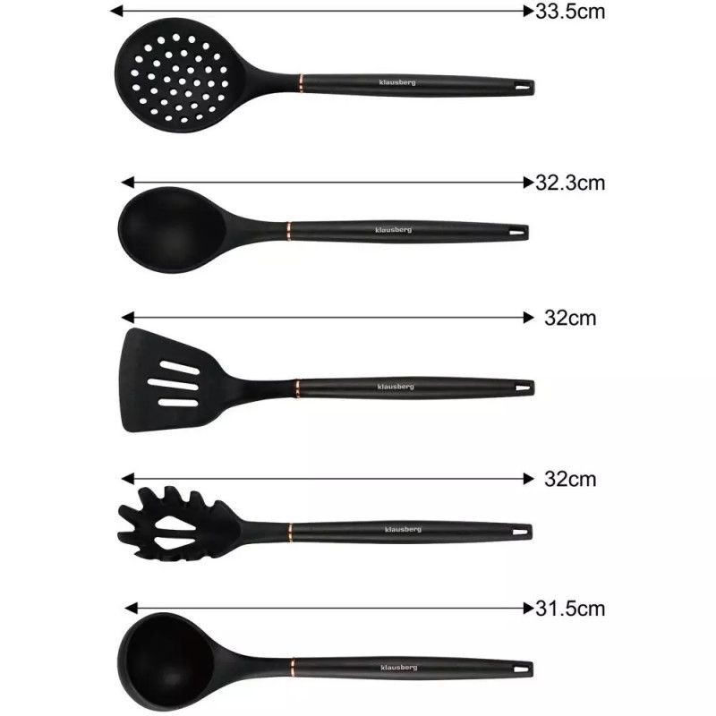 Комплект кухненски прибори Klausberg KB 7835, 12 бр, Неръждаема стомана, Черен