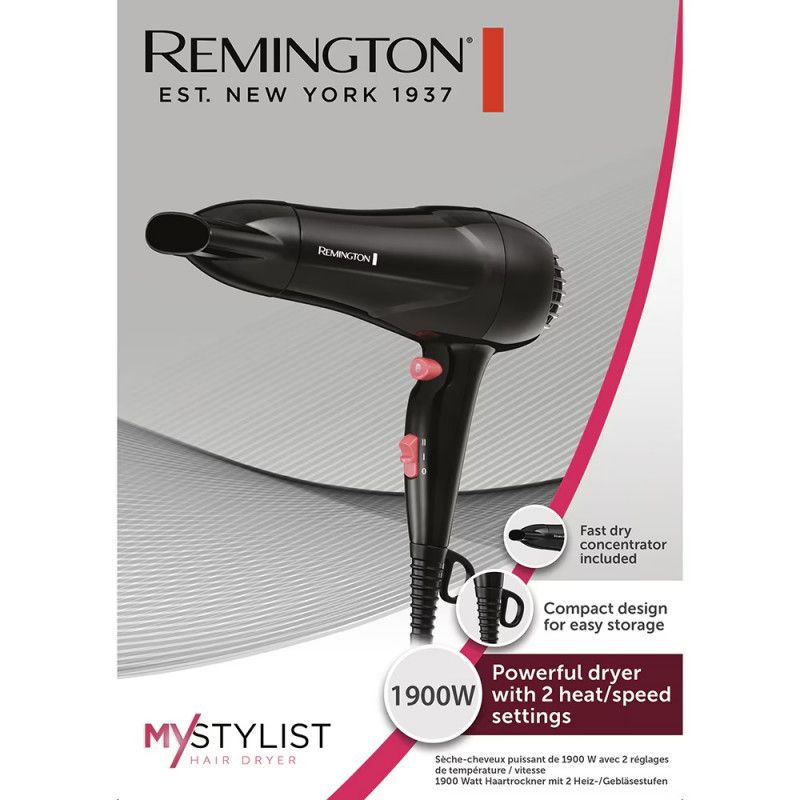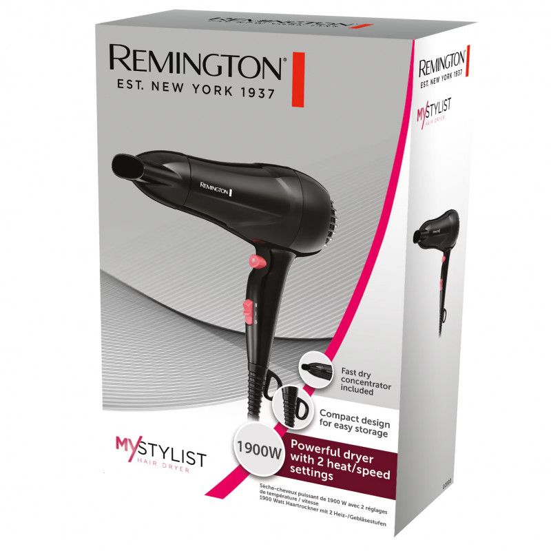 Сешоар Remington MyStylist D2000, 1900W, 2 настройки топлина/скорост, Керамична решетка, Cool shot, Черен