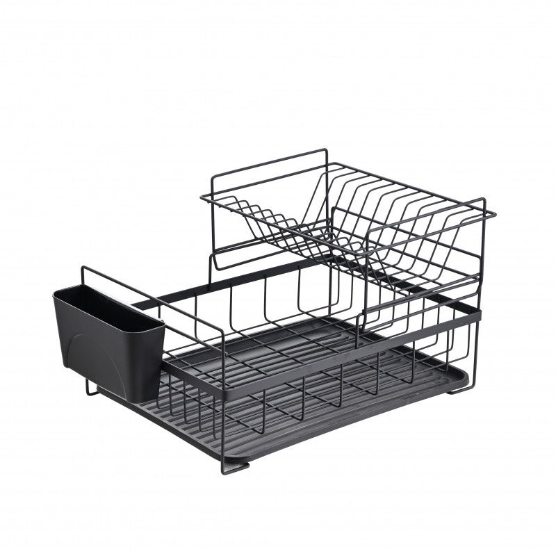 Сушилник за съдове Rosberg R53000P, 2 нива, Поставка за прибори и чинии, Черен