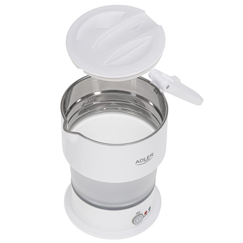 Туристическа ел.кана Adler AD 1377, 600W, 0.6 л, Сгъваем силиконов корпус, Защита от прегряване, Светлинен индикатор, Бял