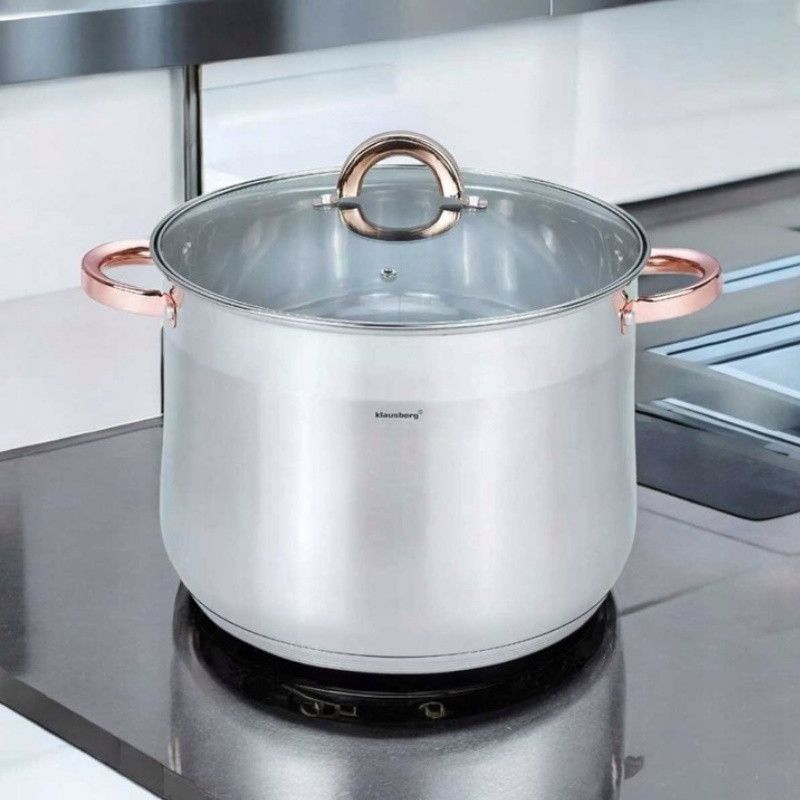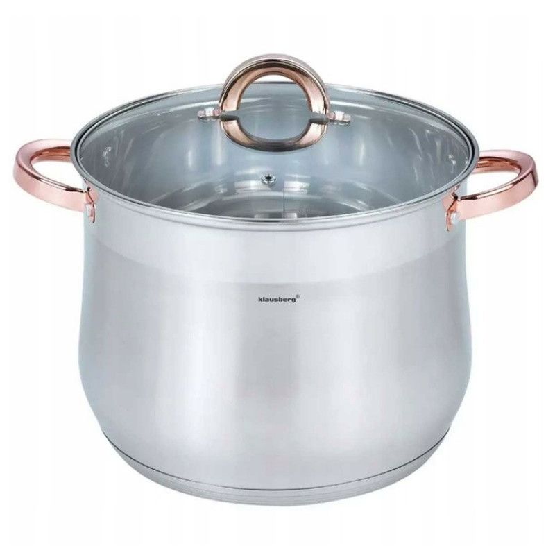 Дълбока тенджера Klausberg KB 7792, 7 л, 22 см, Стъклен капак, Многослойно дъно, Индукция, Инокс/розово злато