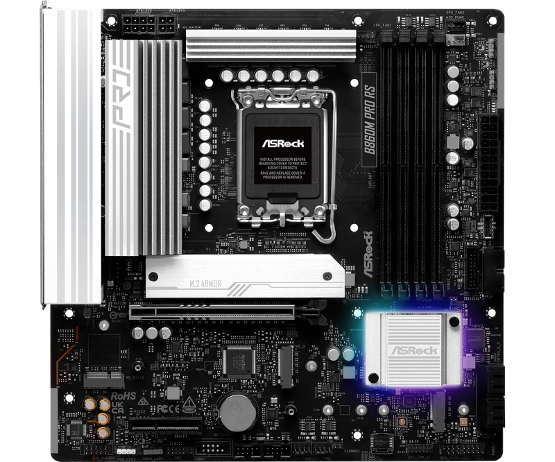Дънна платка ASROCK B860M Pro RS (Intel 1851, 4xDDR5, 1xBlazing M.2, 2xHyper M.2, 2.5Gbe LAN, HDMI, DP) Micro ATX