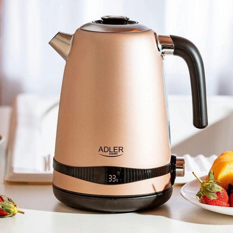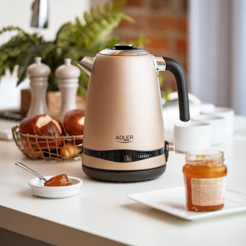 Електрическа кана с поддържане на топлина Adler AD 1295, 1.7 L, 2200W, Настройка 40-100 градуса, Златист