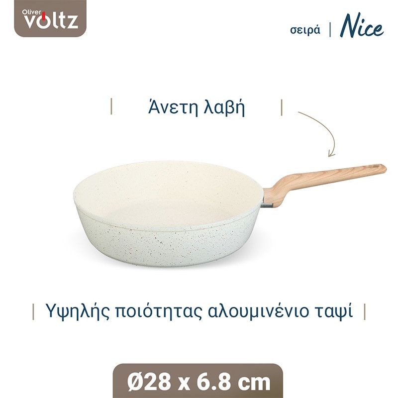 Дълбок тиган Voltz Nice OV54419E28D, 28x6.8 см, Мраморно покритие, Индукция, Кремав меланж