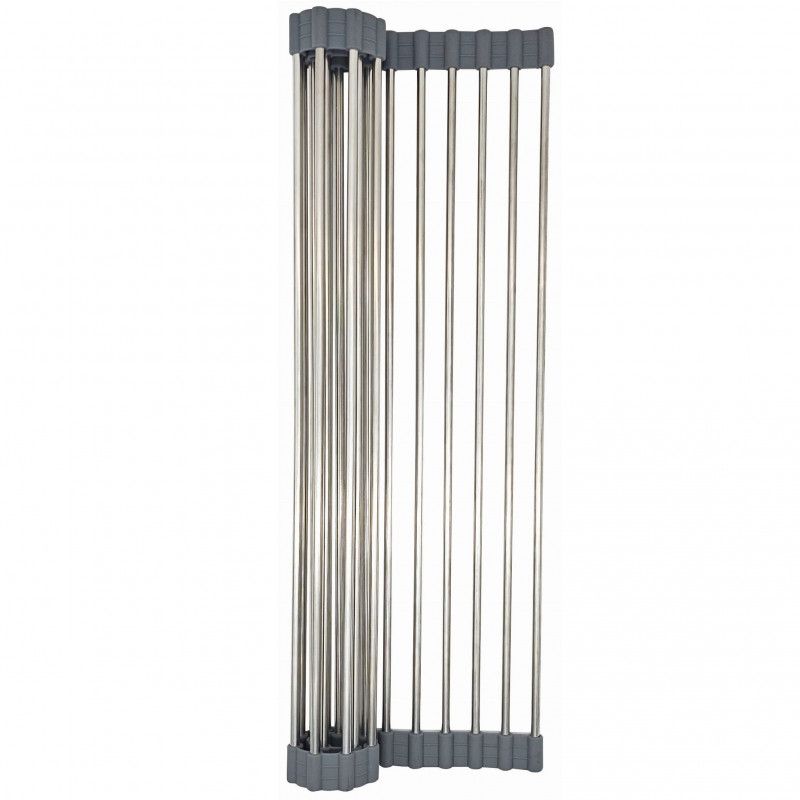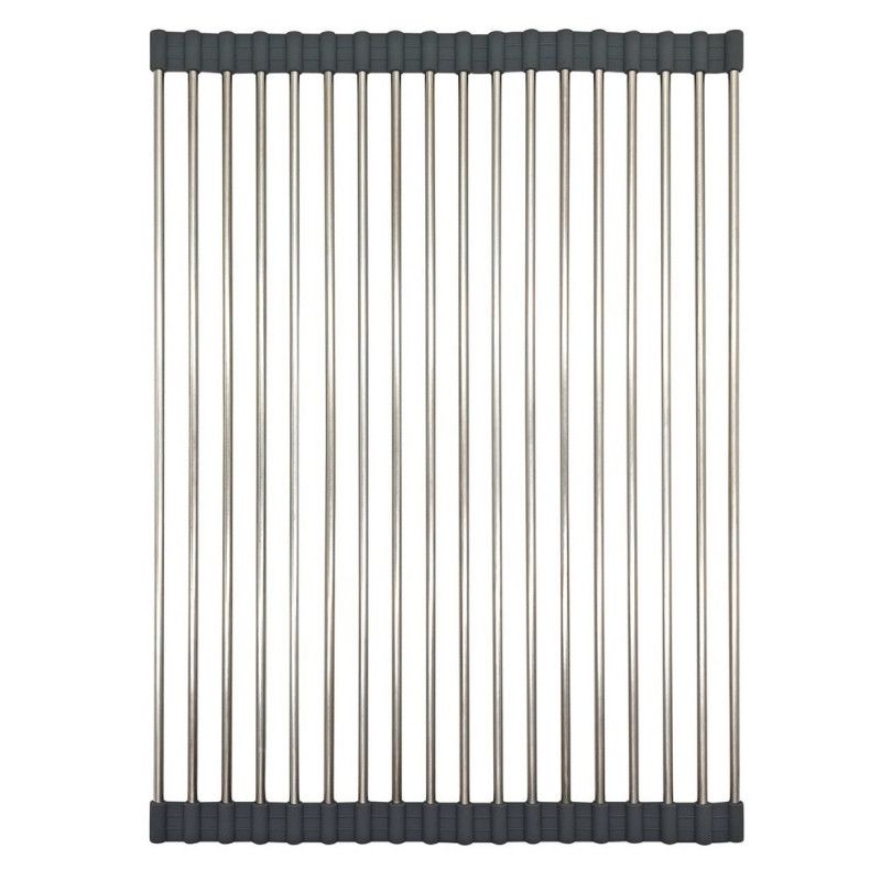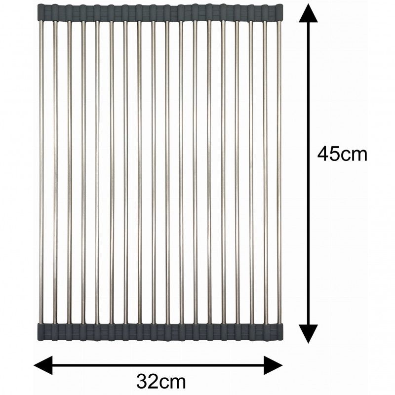 Постелка за сушене на съдове Kinghoff KH 1903, 45х32 см, Устойчива на корозия, Силиконви краища, Неплъзгаща се, Сгъваема, Инокс/сив