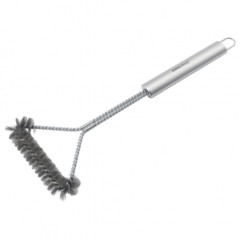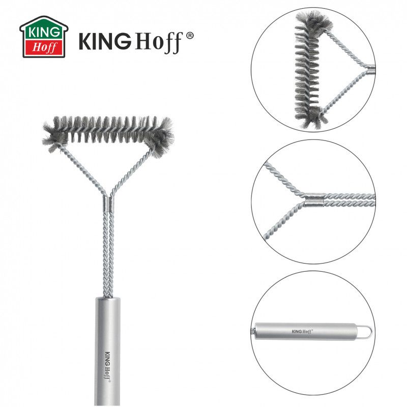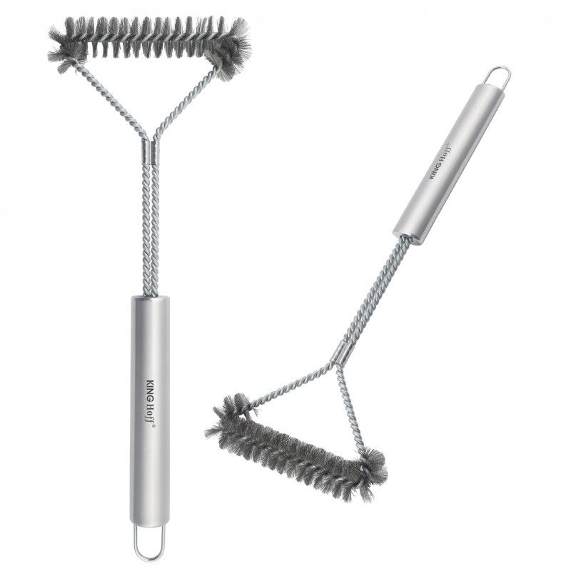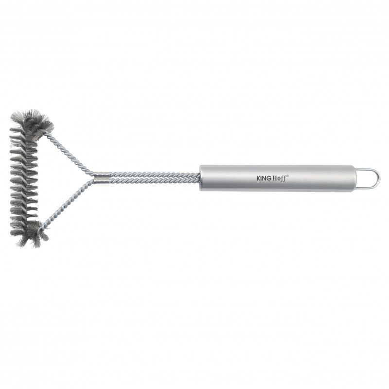 Четка за почистване на барбекю Kinghoff KH 1915, 41.5 см, Ергономична дръжка, Стоманени влакна, Инокс