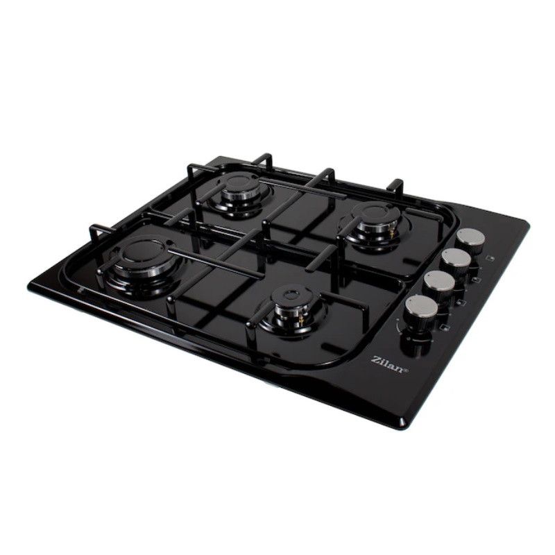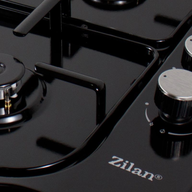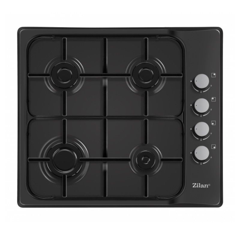 Плот за вграждане Zilan ZLN 0034, 4 газови горелки, 7.35 kW, Пропан-бутан или природен газ, 60х50 см, Чугунени решетки, Защита от изтичане на газ, Черен