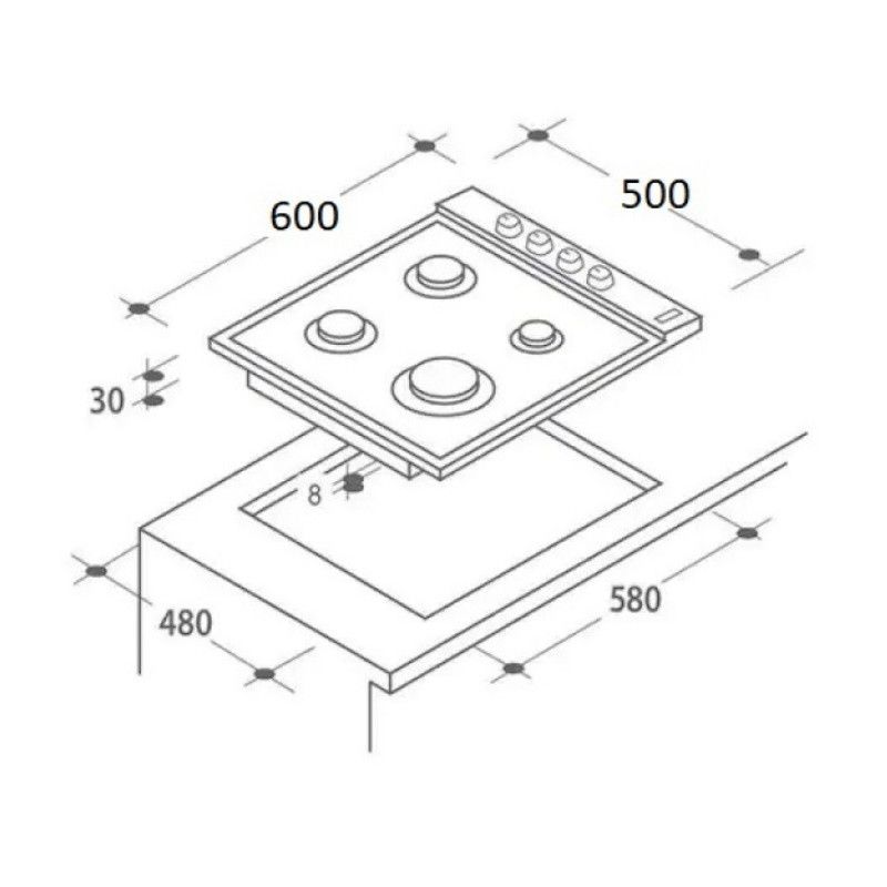 - Размери за вграждане: 58 х 48 см