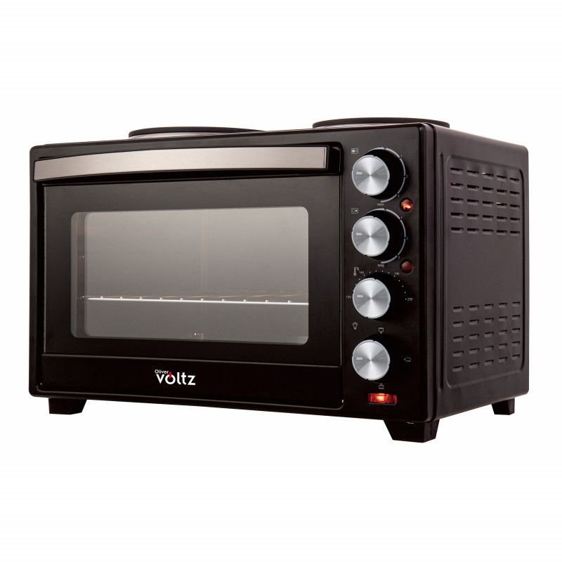 Малка готварска печка Oliver Voltz OV51441F48, 3200W, 2 котлона, 48 л, 100-230C, Двойна стъклена врата, Осветление, Черен