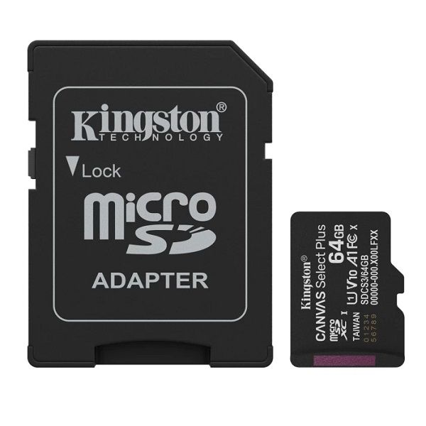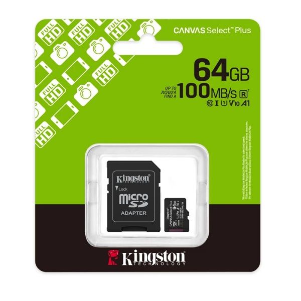 Уебстраница:https://www.kingston.com/en/memory-cards/canvas-select-plus-microsd-card-sdcs3?capacity=64gb&adapter=sd%20adapter