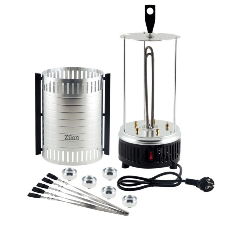 Вертикално барбекю Zilan ZLN5565, 900W, 5 шиша, Керамичен нагревател, Инокс/Черен